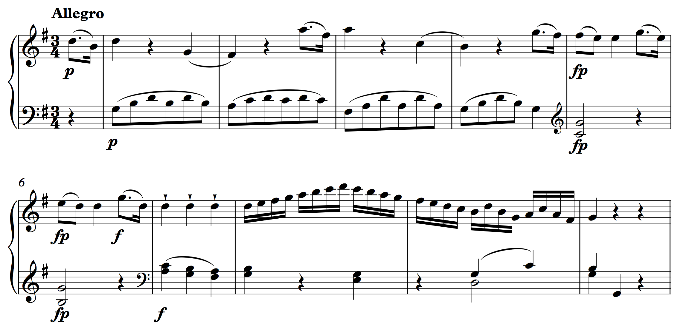 This example exhibits all five characteristics. The basic idea creates a normative unit that is two measures in length. Beginning with the pickup to m. 5, that normative size is fragmented into one-measure units whose second half is sequenced one step lower. At m. 7 increased surface rhythm is matched with an acceleration of harmonic rhythm as the pianist’s sixteenth notes occur above a hemiola in the pianist’s left hand.
