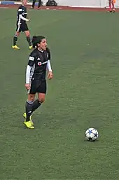 In the 2018–19 league season, she transferred to Beşiktaş J.K.[7] She enjoyed the champion title of her team in the 2018–19 season.[1] She took part at the 2019–20 UEFA Women's Champions League – Group 9 matches.[8][9][10] She played in one matc of the 2021–22 UEFA Women's Champions League qualifying rounds.[11] In the 2022–23 Super League season, she transferred to Fatih Karagümrük S.K.[1]