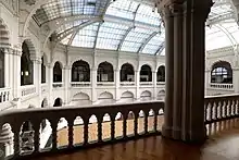 After 1890, Lechner increasingly turned to Hungarian folklore, as derived from Persian and Indian decorative arts, as his inspiration in his aim to form a Hungarian national style. His relationship with Zsolnay flourished and throughout the rest of his career he began to make free use of the company's stoneware tiles, beginning with the Thonet House in Budapest, Váci utca (1889) with its steel structure and the façade covered with Zsolnay terracotta. He followed this up with the Museum of Applied Arts (1893–96), a commission for which he and Pártos won the design competition in 1891. The building's glazed tiles, the pyrogranite decorative elements, and the pierced floral motifs testify to Lechner's newfound Indian, Persian, Moorish, and Hungarian folk influences, as well as the cladding theories of German architectural theorist Gottfried Semper.[5] The building represented a significant break from the historicism - mostly Baroque- and Gothic-revival architecture - popular in Budapest at the time. Though it encountered a mixed reception amongst critics, it was triumphantly inaugurated in time for the 1896 celebrations of the millennium anniversary of the Kingdom of Hungary. The building is today considered the first complete statement of Hungarian Szecesszió (Art Nouveau) architecture, and it formed a counterweight in the Hungarian half of the Austro-Hungarian dual monarchy to the work of the Secession developed later in Vienna around Otto Wagner, Joseph Maria Olbrich, Gustav Klimt, and others.