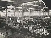 The Cattle Market opened on 28 November 1879. Øksnehallen was built in 1891 to a design by city architect Ludvig Fenger. It housed dealers' offices and had a capacity for 1600 head of cattle. The market hall remained in use until the White Meat Market was inaugurated in the 1959s.[1]