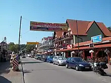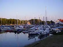 The Pomerelian settlement of Łeba was first mentioned in a 1282 document of Mestwin II, Duke of Pomerania.[2] At that time the village was located about two kilometers (1.2 miles) west from the present mouth of the Łeba River. The church of St. Nicholas was mentioned in 1296.[2] Łeba was part of fragmented Poland until 1309, when it was annexed by the Teutonic Order after their takeover of Gdańsk.[2] Łeba received municipal rights by the State of the Teutonic Order in 1357. Located at the Łebsko Lake at the Baltic Sea, it developed to a fishing port and a wood marketplace.