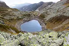 Traditionally they belong to the Štrpce municipality formed as a result of Iceberg erosions. The people of Štrpce know them as "mountains eyes" thanks to their beauty. Depending on the weather conditions, these lakes are covered with snow from November to May. It consists of lakes: Livadičko lake, Mountain Vir lake, small Jezersko lake etc. The inhabitants of Štrpce still call it Štrebačko lake. It covers wide plains and deep circle land the peak of Livadica 2491 m reaching the height of 2.173 and its width of 220–124 m.[9] The sea shore length is 685 m. The lake's depth is various, starting from 6.50-8.60 m depending on weather conditions. The visibility of the lakes' water is clear and its bottom can be seen. The surface is filled with water from main falls, snowfalls and snow melting and a great number of underwater springs. In this lake the brown trout also lives, but as a result of tough weather and water conditions it cannot be inseminated.