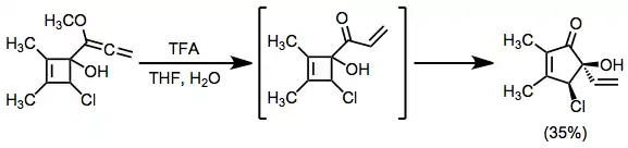 Alkoxyallenes with an α-hydroxy substituent may provide allylic alcohols after rearrangement. Ring expansion provides the thermodynamic driving force in this case.[14]