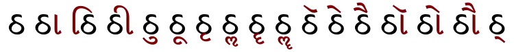 | ठ | ठा | ठि | ठी | ठु | ठू | ठृ | ठॄ | ठॢ | ठॣ | ठे | ठै | ठो | ठौ | ठ् |