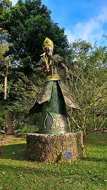 Ọsanyin (Yoruba: Ọ̀sanyìn, rendered Osaín/Ossain/Ossaím in Latin America, Ague (Age) in Fon[1] and Aziza in Esan) is the orisha that had dominion over all Leaf, Herb, Nature also known for healing and magic, which popularity consider as an (Herbalist and a Magician). Is the creator of Onishegun. He is known as a powerful wizard and master of all spells and crafts found in the wild and the untamed areas of nature.[2] In America he is syncretized with Saint Joseph. Osanyin described features of Leaf and Herb, said, there is (Cause, Healing, Magic, Knowledge) and other thousands of features within Leaf and Herb. He is a high priest of Imo Adayeba.