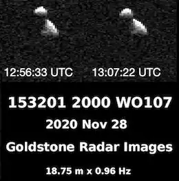 - 1 2 3 4 5 6 7 8 9 10 11 12 "JPL Small-Body Database Browser: 153201 (2000 WO107)" (2020-11-28 last obs.). Jet Propulsion Laboratory. Archived from the original on 6 November 2020. Retrieved 29 November 2020.