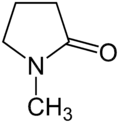 N-Methyl-2-pyrrolidone (NMP) is an organic compound consisting of a 5-membered lactam. It is a colorless liquid, although impure samples can appear yellow. It is miscible with water and with most common organic solvents. It also belongs to the class of dipolar aprotic solvents such as dimethylformamide and dimethyl sulfoxide. It is used in the petrochemical, polymer and battery industries as a solvent, exploiting its nonvolatility and ability to dissolve diverse materials (including polyvinylidene difluoride, PVDF).[3]