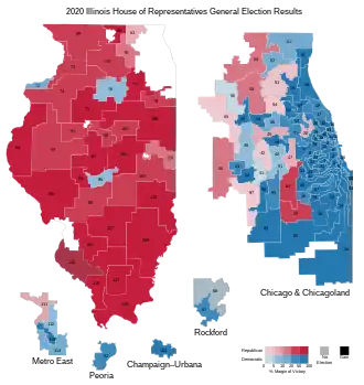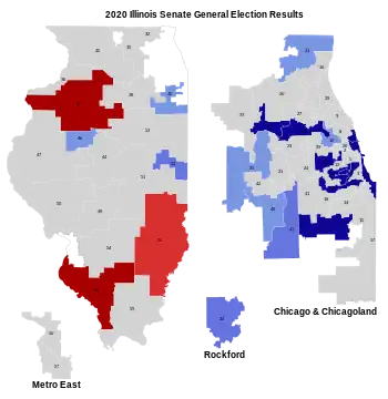 Of the Senate's 59 members, 22 were up for election in the 2020 Illinois Senate election. One seat in the Senate changed hands from the Republican to the Democratic party, and one seat changed hands from the Democratic party to the Republican party in the House.