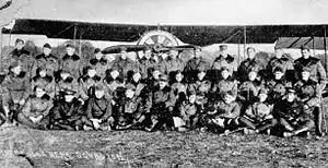 The 104th Aero Squadron was organized on 25 August 1917. The unit was formed from all the unassigned recruits at Kelly Field, Texas, who were lined up in formation and 150 men were counted off to form the squadron. No attention was paid to the capabilities of its members at the time, because there were no facilities at Kelly Field for trade testing or flight training. The unit was instructed in close order drill and ordinary post duties.[2][9]