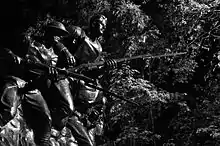 The 107th Infantry Memorial is an outdoor bronze sculpture and memorial located at the intersection of East 67th Street and Fifth Avenue in Central Park, in Manhattan, New York, United States, which honors members of the 107th Infantry who died during World War I. Created by the sculptor Karl Morningstar Illava (1896–1954), who "drew from his own experience serving as a sergeant with the 107th," according to the New York City Department of Parks & Recreation, the sculpture cost an estimated $60,000 at the time of its construction, depicts the actions of seven World War I-era soldiers, and rests on a 25-foot-wide stepped granite base designed by architects Rogers & Haneman.[1]
