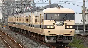 The 117 series (117系, 117-kei) is a Japanese suburban electric multiple unit (EMU) train type introduced in 1979 by Japanese National Railways (JNR), and currently operated by West Japan Railway Company (JR-West). The train type was operated by Central Japan Railway Company (JR Central) from 1987 until 2013. A total of 216 cars were manufactured. When JNR was privatized and divided into the individual JR Group companies, JR Central received 72 cars, while JR-West took possession of 144.