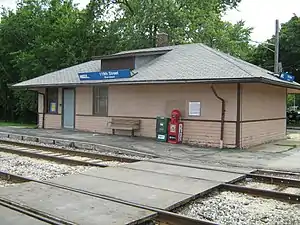 119th Street is one of four Metra railroad stations in Blue Island, Illinois along the Beverly Branch of the Rock Island District Line, and five within Blue Island generally. It is 14.8 miles (23.8 km) from LaSalle Street Station, the northern terminus of the line,[2] and is named after 119th Street and located between 119th Street and 119th Place. In Metra's zone-based fare system, 119th Street is in zone C. As of 2018, 119th Street is the 150th busiest of Metra's 236 non-downtown stations, with an average of 269 weekday boardings.[1]