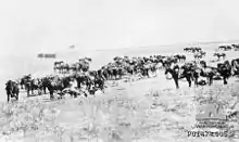 In August 1918, the regiment was issued with the traditional cavalry sabre and training began in cavalry tactics, so they were ready to resume the British advance in September. Advancing along the coast, the 11th Light Horse took part in the battle of Samakh on 25 September. The regiment first charged the Ottoman defences on horseback using their sabres, then dismounted and cleared the town with their rifles and bayonets.[1] The Ottoman Empire signed the Armistice of Mudros on 30 October 1918, and the war in the Middle East ended. However, the regiment had to return to Egypt, where rioting had started in March 1919. Finally, in July 1919, the regiment sailed for Australia. The war cost the regiment over 100 per cent casualties, with 95 killed and 521 wounded.[1]