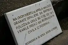On 12 April 1993 a VRS artillery attack of two short bombardments on Srebrenica left 56 dead, including children, and 73 seriously wounded.[5] Shells dropped on the densely packed streets of the town.[2] 14 bodies of children were found in a school playground (soccer field),[1][6] which had been hit by a shell at around 3 PM according to HRW.[7] There was a total of 15 civilian casualties at the playground according to the ICTY.[8]