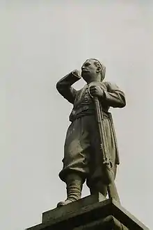 Recruits from the Pittsburgh area and Allegheny County organized at Camp Copeland from September 2–19, 1862 into the 155th Regiment Pennsylvania Volunteer Infantry. Edward J. Allen served as the first colonel. After initial training and drilling, the regiment moved via train to Washington, D.C. where it joined the 2nd Brigade, 3rd Division of the Union Fifth Corps. From there, it went to Sharpsburg, Maryland, after the Battle of Antietam. Their first introduction to battle came on December 13, 1862, at the Battle of Fredericksburg where the color guard suffered heavy casualties in an ill-fated assault.