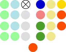 | Affiliation | Party (Shading indicates party has members in the majority bloc; italicization indicates party has members from the minority bloc) |