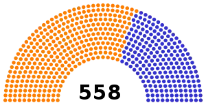 All 558 seats in the House of Commons 280 seats needed for a majority | |||||||||||||||||||