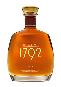 1792 Bourbon, formerly known as Ridgewood Reserve 1792 and 1792 Ridgemont Reserve, is a Kentucky straight Bourbon whiskey produced since 2002 by the Barton 1792 Distillery in Bardstown, Kentucky. The brand and distillery have been owned by the Sazerac Company since 2009.[1] It is part of a line of small-batch bourbons aimed at the high-end liquor market. It is sold at 93.7 U.S. proof (46.85% alcohol by volume).