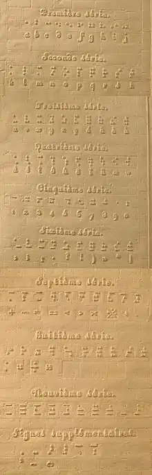 - ↑ Procédé pour écrire les Paroles, la Musique, et le Plain-chant au moyen de points Archived 2015-06-03 at the Wayback Machine