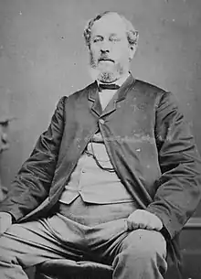 After the resignation of George Waterhouse as Premier, Governor Bowen asked three-time ex-Premier William Fox to take office as an interim measure.[2] Fox was to hold office only until Julius Vogel returned from a postal conference in Australia. He was described as "fairy godmother and peacemaker" to the Continuous Ministry.[3] Vogel returned to New Zealand at the start of April and asked Fox to stay on to the beginning of the next session of Parliament, but he refused and passed the office on to Vogel.[4]