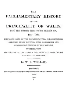 - ↑ William Retlaw Williams (1895). The Parliamentary History of the Principality of Wales... E. Davis and Bell.