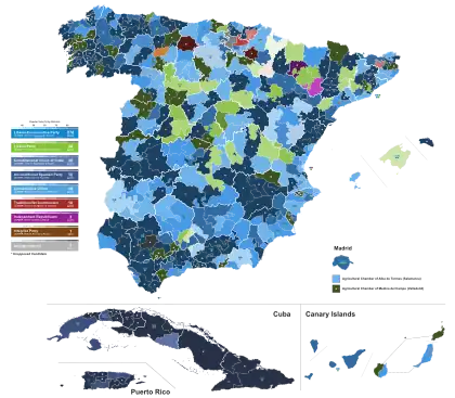- ↑ "Real decreto disponiendo la forma en que se han de verificar las elecciones de Diputados á Cortes en las islas de Cuba y Puerto Rico" (PDF). Gaceta de Madrid (in Spanish). Agencia Estatal Boletín Oficial del Estado (363): 957–964. 28 December 1892.