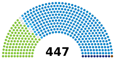 For the Congress of Deputies, 116 seats were elected using a partial block voting system in 34 multi-member constituencies, with the remaining 329 being elected under a one-round first-past-the-post system in single-member districts. Candidates winning a plurality in each constituency were elected. In constituencies electing eight seats or more, electors could vote for no more than three candidates less than the number of seats to be allocated; in those with more than four seats and up to eight, for no more than two less; in those with more than one seat and up to four, for no more than one less; and for one candidate in single-member districts. The Congress was entitled to one member per each 50,000 inhabitants, with each multi-member constituency being allocated a fixed number of seats. Additionally, literary universities, economic societies of Friends of the Country and officially organized chambers of commerce, industry and agriculture were entitled to one seat per each 5,000 registered voters that they comprised, which resulted in two additional special districts for the 1896 election. The law also provided for by-elections to fill seats vacated throughout the legislature.[4][10][12][13]