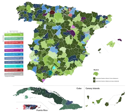 - ↑ "Real decreto declarando subsistente la división territorial para elecciones de Diputados á Cortes en las islas de Cuba y Puerto Rico, establecida por Real decreto de 18 de Diciembre de 1890" (PDF). Gaceta de Madrid (in Spanish). Agencia Estatal Boletín Oficial del Estado (363): 964. 28 December 1892.