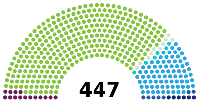 For the Congress of Deputies, 116 seats were elected using a partial block voting system in 34 multi-member constituencies, with the remaining 329 being elected under a one-round first-past-the-post system in single-member districts. Candidates winning a plurality in each constituency were elected. In constituencies electing eight seats or more, electors could vote for no more than three candidates less than the number of seats to be allocated; in those with more than four seats and up to eight, for no more than two less; in those with more than one seat and up to four, for no more than one less; and for one candidate in single-member districts. The Congress was entitled to one member per each 50,000 inhabitants, with each multi-member constituency being allocated a fixed number of seats. Additionally, literary universities, economic societies of Friends of the Country and officially organized chambers of commerce, industry and agriculture were entitled to one seat per each 5,000 registered voters that they comprised, which resulted in two additional special districts for the 1898 election. The law also provided for by-elections to fill seats vacated throughout the legislature.[1][7][8][9]