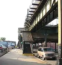 From June 1968[18] to 1987, express service on the elevated portion of the line from Church Avenue to Kings Highway operated in the peak direction (to Manhattan AM; to Brooklyn PM), with some F trains running local and some running express. During this time period, this station was used as an express station.[19][20] Express service ended in 1987, largely due to budget constraints and complaints from passengers at local stations. Express service on the elevated Culver Line was ended due to necessary structural work, but never restored.[19][20][21]