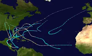 - ↑ Damages caused by the hurricane totaled to at least $4,135,000: Miami suffered $160,000 in damages;[1] the Florida East Coast Railway had $200,000 in damages;[1] Houseboat No. 4 had at least $50,000 in damages;[6] Havana suffered $2,000,000 in damages;[7] Puerto Limon suffered $125,000 in damages to its rubber and banana crops;[8] several fruit plantations' losses in Central America amounted to $1,000,000;[8] and the wrecks of Peerless and Sara totaled $600,000 in damage.[5]