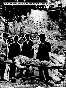 The 1911 Michoacán earthquake occurred on June 7 at 04:26 local time (11:02 UTC).[3][4] The epicenter was located near the coast of Michoacán, Mexico. The earthquake had a magnitude of 7.6 on the moment magnitude scale.[5] 45 people were reported dead.[6] In Mexico City, 119 houses were destroyed.[7] Cracks were reported in Palacio Nacional, Escuela Normal para Maestros, Escuela Preparatoria, Inspección de Policía, and Instituto Geológico.[8] Ciudad Guzmán, the seat of Zapotlán el Grande, Jalisco, suffered great damage.[9]