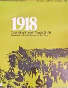 1918, subtitled "Operation Michel: March 21–30, Germany's Last Chance in the West", is a board wargame published by Simulations Publications Inc. (SPI) in 1970 that simulates Operation Michael, the final German offensive on the Western Front in which they tried to win the war or at least force peace talks before American soldiers started to arrive on the Western Front in force. The game was well received by critics, but did not sell well.