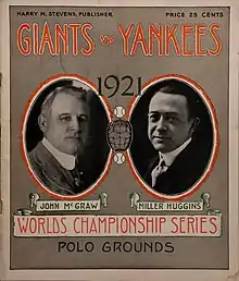 The 1921 World Series was the championship series in Major League Baseball for the 1921 season. The 18th edition of the World Series, it matched the National League champion New York Giants and the American League champion New York Yankees.