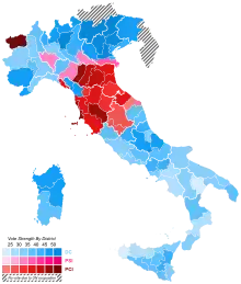 | Italian Communist Party | 4,356,686 | 18.93 | 104 | |