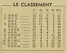 - ↑ MCA gagne sur Tapis vert, décision du 2.10.1947, L'OHD fait appel et obtient l'homologation du résultat sur décision de la FFF à Paris le 17.1.1948