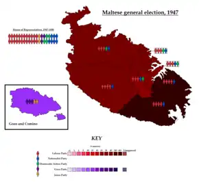 General elections were held in Malta between 25 and 27 October 1947.[1] They were the first elections held under universal suffrage for women[2] and Agatha Barbara became the first woman elected to Parliament. These elections saw the Labour Party win 24 of the 40 seats.