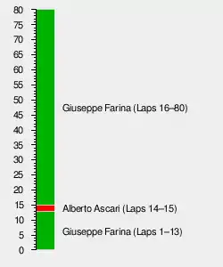 - ^2 — Dorino Serafini qualified and drove 47 laps of the race in the #48 Ferrari. Alberto Ascari, whose own vehicle had already retired, took over Serafini's car for the remaining 33 laps of the race.[8]