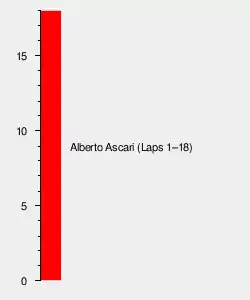 Ascari, who had taken his fourth consecutive victory, along with a fourth consecutive fastest lap, had now scored the maximum of 36 points for the season, as only a driver's four best results counted. As a result, he clinched the world championship, making him the first driver to win the championship with two races left to go.[1] The date was 3 August, the earliest anyone would claim the Championship until Jim Clark seized the crown on 1 August in 1965, also at the Nürburgring. Ascari's teammates, Taruffi and Farina, remained in second and third, respectively, in the Drivers' Championship, while Swiss driver Fischer's second podium of the season raised him up to fourth in the standings.