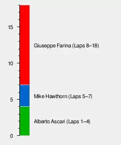 - Car #4: Villoresi (10 laps) then Ascari (5 laps)
