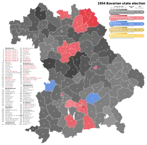 The 1954 Bavarian state election was held on 28 November 1954 to elect the members of the Third Bavarian Landtag. It is notable for being both the only time that a member of the SPD was elected as Minister-President, and the only time that the CSU was in the opposition.[1]