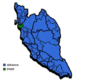 | Alliance Party | United Malays National Organisation | 589,933 | 58.90 | 34 | ||
