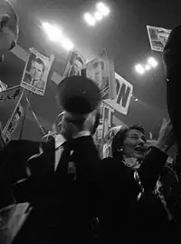 Unanimity was expected for Vice President Nixon as well, until one renegade delegate, former Democratic Congressman and perennial candidate Terry Carpenter, decided to place in nomination for Vice President a man named Joe Smith, from Carpenter's own Terrytown, Nebraska.[3] When asked who Joe Smith was at the 1956 convention, Carpenter mysteriously replied, "Oh, he is a symbol of an open convention, in that sense of the word."[4][3] It was eventually revealed that there was no such man, and that his nomination was a protest against the perceived political theater of the closed 1956 Republican National Convention.[5] Carpenter ultimately did cast his one dissenting vote for Vice President for Joe Smith.