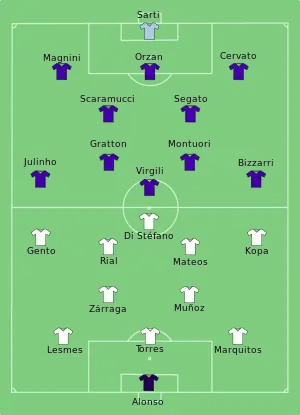 - ↑ Di Stéfano, a native Argentine, had represented both Argentina and Colombia earlier in his international career; however, he became a naturalised citizen of Spain in 1956, and began playing in the Spain national team in 1957.[13][14]