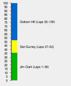 | 3 | 11 | Lotus-Climax | 97 | + 3 laps | 6 | 4 | |