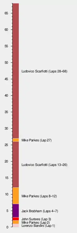 | 6 | 40 | Brabham-Climax | 66 | + 2 laps | 15 | 1 | |
