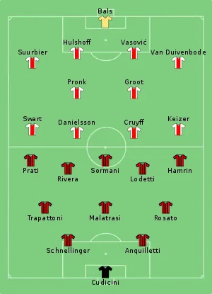 The 1969 European Cup final was a football match played at the Santiago Bernabéu Stadium in Madrid on 28 May 1969 between AC Milan of Italy and Ajax of the Netherlands, to determine the champions of the 1968–69 European Cup. Ajax made history by becoming the first Dutch side to reach the final, but they were beaten by their Italian opponents 4–1.[1][2]