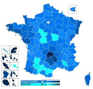 The second round was held on 15 June 1969. About 69% of eligible voters participated. Pompidou was elected President of France with a comfortable majority of more than 58%.[1]