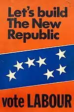 The Labour Party on the other hand were predicted to make gains after firmly ruling out a pre-election pact with Fine Gael. The party fielded a number of new, high-profile candidates, including Justin Keating, Conor Cruise O'Brien, David Thornley and Noël Browne.[4] The slogan "The Seventies will be Socialist" was popular with Labour supporters; however, Fianna Fáil played the "red card", linking the Labour Party with communism. The tactic worked successfully.