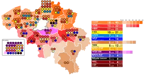 Last election 27.10%, 59 seats 20.87%, 47 seats
